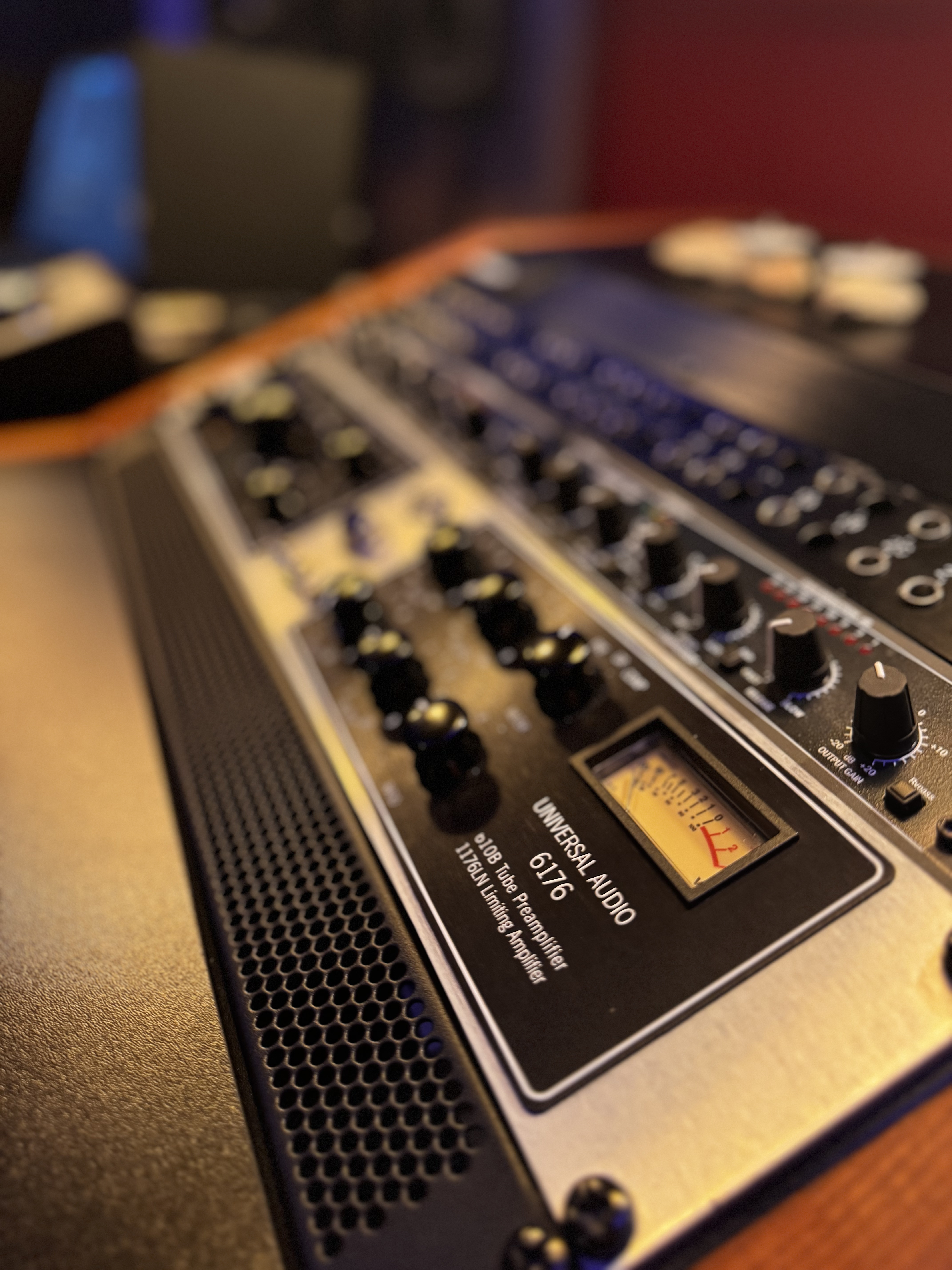 High-end speakers and acoustically treated environment for accurate mixing and mastering.