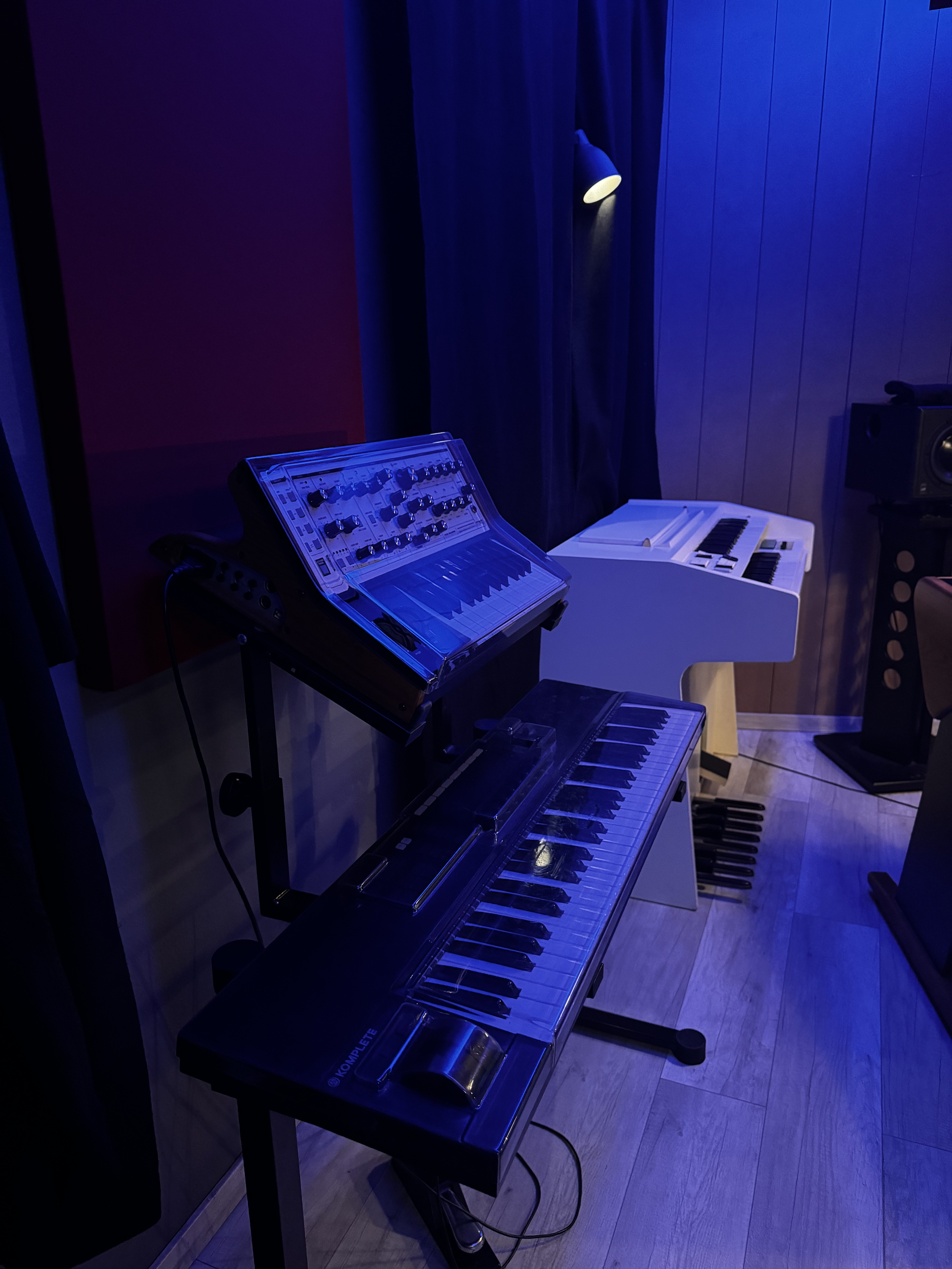Acoustically treated space with high-end monitoring - the same quality professionals use, without the commitment.